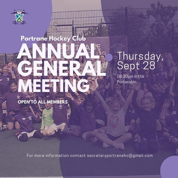 Our annual AGM takes place on Thursday the 28th of September at 8.30pm at the main Portcabin ,Open to all members. If you would like to attend please email secretaryportranehc@gmail.com to register your attendance.